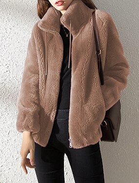 Femmes Manteau d'Hiver Veste Sherpa Veste Décontractée Chaud Confortable Avec Poches Moderne Occasionnel Uni Vacances Rue Tenue quotidienne Sortir Fermeture éclair Régulier Col montant Coupe régulière