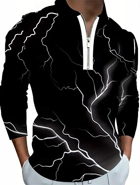 Homme Éclair Polo manche longue Col Rabattu Contemporain Occasionnel Athleisure Décontracté Quotidien Fermeture éclair Impression 3D Printemps Automne Hiver Noir