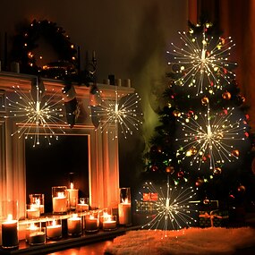 8pcs feu d'artifice décorations de noël starburst total 800leds fil de cuivre fée scintillant lumières plug in string lights télécommande 8 modes étanche starburst lumières pour noël anniversaire