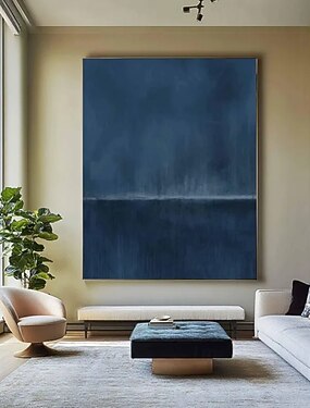peinture abstraite d'horizon peinte à la main extra grand art mural pain ting peinture de paysage bleu faite à la main sur toile grand art mural bleu peinture moderne abstraite pour chambre à coucher