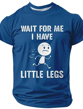 T-shirt graphique pour homme « Attendez-moi, j'ai de petites jambes » (dessin humoristique et sarcastique d'un bonhomme allumette qui court), manches courtes, col rond, coupe classique, décontracté,