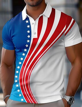 4 juillet 2026, 250e anniversaire Jour de l'Indépendance Homme Drapeau Américain Polo Manches courtes Col Polo Revers Décontracté Quotidien Festival Boutons Été Blanche Rouge bleu marine