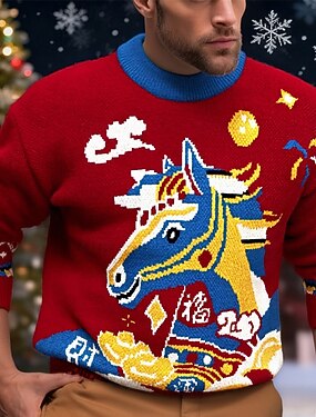 Homme Chandails de Noël Pull Pull Fair Isle Pull Tricoté Côtelé Tricoter Hauts Réguliers Jacquard Tricoté Coloré Col ras du cou ancien Mode Noël Vacances Vêtement Tenue Automne Hiver Rouge S M L