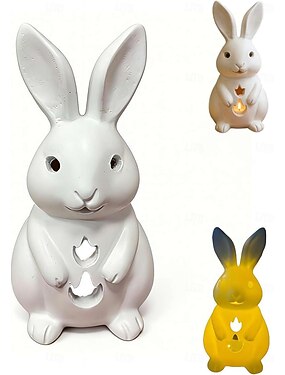 Bougeoir lapin de Pâques en résine ajourée, bougeoir lapin blanc, statuette porte-bougie chauffe-plat, petit bougeoir figurine lapin en résine pour décoration de table printanière