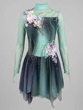 Robe de patinage artistique Femmes Fille Patinage Robe Vert noir Trou de pouce Vernis à gel Halo Maille Spandex Élastique Entraînement Pratique Professionnel Tenue de Patinage Chaleur Thermique