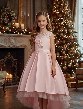 Enfants Fille Robe Robe de fête Sirène Sans Manches Formel A Volants Col ras du cou Elégant Magnifique Polyester Mi-long Robe Évasée Robe Trapèze Automne Hiver 3-10 ans Rose Claire