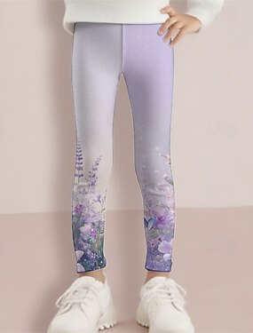 Fille 3D Fleuri Pantalons Leggings Printemps Automne Mignon Basique Enfants 4-12 ans Extérieur Occasionnel Quotidien Coupe régulière