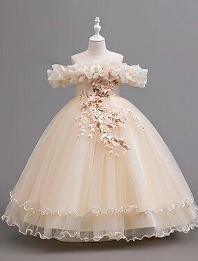 Enfants Fille Robe de demoiselle d'honneur Robe de fête Couleur unie Demi Manches Utilisation Mariage Soirée Paillettes Elégant Doux Polyester Maxi Robe en Tulle Eté Printemps 3-12 ans Champagne Rose