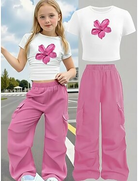 Fille 3D Fleuri Graphique T-shirt Manche Courte Impression 3D Été Printemps Sports Mode Streetwear Enfants 4-12 ans Col Rond Occasionnel Quotidien Extérieur Coupe régulière