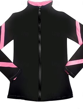 Veste polaire noire extensible pour patinage artistique, idéale pour l'entraînement et la compétition. Manches longues, ornée de cristaux et de strass.