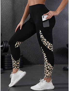 Femmes Pantalons de Pilates Pantalon de yoga Leggings de fitness Poches Latérales Lifting des fesses plissées Taille haute Entraînement en salle Course Fitness Leggings Couleur Mélangée Motif Léopard