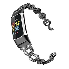 Bracelet de Montre pour Fitbit Charge 5 Acier Inoxydable Remplacement Sangle Diamant bling Bijoux Bracelet Bracelet