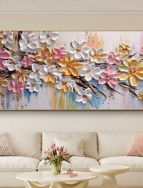 Peinture à l'huile faite à la main sur toile, décoration murale moderne abstraite 3D, couteau à palette, fleur pour salon, décoration d'intérieur, cadre tendu, peinture suspendue/roulée, sans cadre,