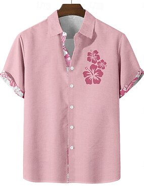 Homme Imprimé Floral Fleurs Chemise hawaïenne Chemise Boutonnée Chemise Aloha Manche Courte Hawaïen Vacances Fête Tenue de plage Été Printemps Col Rabattu Impression 3D Chemise en lin Bleu Rose