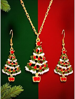 Ensemble de bijoux pour femme en forme de sapin de Noël avec collier pendentif en émail festif et boucles d'oreilles pendantes - accessoires de fête pour les fêtes de Noël et les cadeaux
