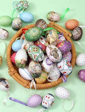 24 décorations de Pâques à suspendre, œufs colorés vintage peints de lapins et de fleurs avec rubans, décorations réutilisables pour le sapin de Pâques, cadeaux pour les fêtes de printemps, petits