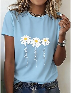 Femmes T-shirt Imprimé Fleuri Graphique Plantes Bohème Hawaïen Élégant Manche Courte Col ras du cou Col rond Hauts Réguliers Quotidien Bleu Jaune Rose Claire Orange Été Printemps