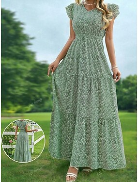 Femmes Robe maxi Robe Décontractée Robe Fleurie Élégant Mode Moderne Extérieur Vacances Sortir Coupe régulière Fleuri Manche Courte Col en V Bleu Noir Vert Été Printemps