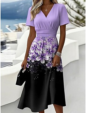 Femmes Robe Midi Robe trapèze Vacances Occasionnel Boho Coupe régulière Fleuri Graphique Manche Courte Col en V Bleu Blanche Violet Orange Été Printemps