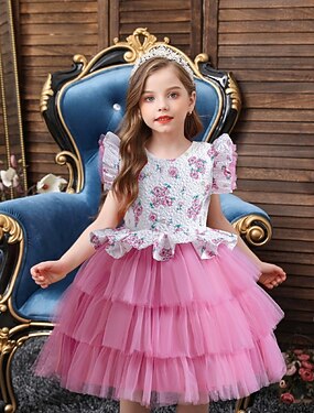 Robe de Demoiselle d'Honneur Fille Fille Robe de soirée Tenue de mariage Soirée Mariage Formel Mode Princesse Beau Maille Sans manches Col Rond Blanche Rose Claire 4 ans et +