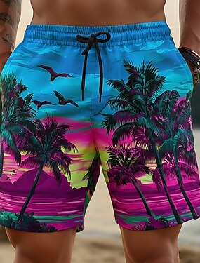 Homme Cocotier Nature et paysages Plantes Tropicales Maillots de bain Shorts de bain Shorts de Surf Taille Moyenne Hawaïen Vacances à la Plage Poches Latérales doublure en maille Taille élastique