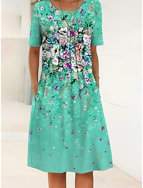 Femmes Robe Midi Robe trapèze Robe élastique Robe à Volants Vacances Occasionnel Fête Date Coupe régulière Fleuri Graphique Manche Courte Col en V Bleu Rose Claire Vert Été Printemps
