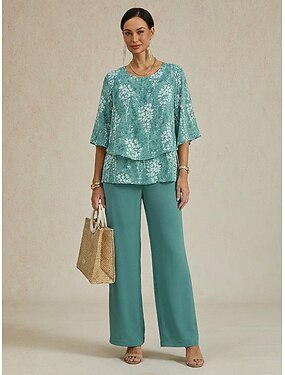 Femmes Ensembles de Pantalons Demi Manches Papillon Col rond Fleuri Graphique Élégant Vacances Occasionnel Quotidien Vacances Vert Printemps & Été