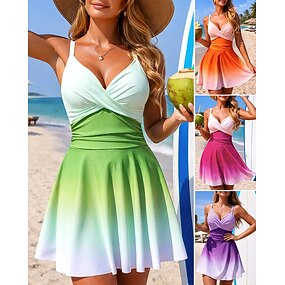 Femmes Maillot de bain Une pièce Maillot de bain à jupe Dégradé Séchage Rapide Élastique Sans manches Maillot de Bain Maillot de bain Surf Plage Natation Été