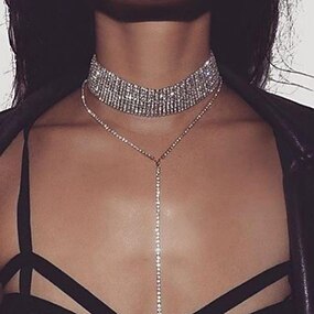 Collier ras du cou Chaîne de Corps 身体链 Elégant & Luxueux Etincelant Sexy Strass Alliage Pour Disque Cosplay Carnaval Femme Bijoux de fantaisie Bijoux fantaisie