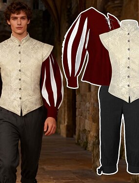 Médiéval Renaissance Costume élégant Chevalier Chevalier Celtique Tenue royale Déguisement Homme Fantaisie Halloween Carnaval Performance LARP Foire de la Renaissance Adulte Gilet Chemise Pantalon