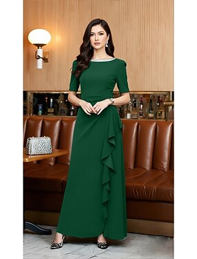 Fourreau Colonne Longueur au sol Robe d'invité de mariage Robe de Cérémonie Robe de soirée Robe de Mère de Mariée Demi Manches Col Bateau Élégant Formel robe demoiselle d honneur Fête de mariage