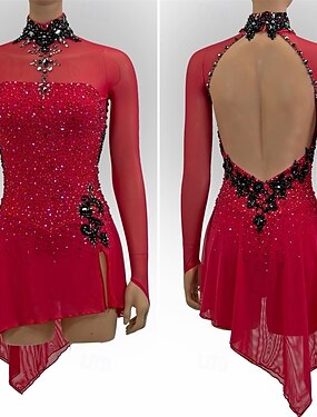 Robe de patinage artistique Femmes Fille Patinage Robe Rouge Patchwork Dos Nu Maille Spandex Élastique Entraînement Pratique Professionnel Tenue de Patinage Chaleur Thermique cristal pailleté Sans