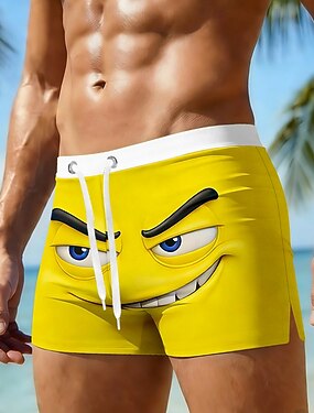 Homme Illusion d'optique Dessin Animé 3D Visage Souriant Shorts de bain Shorts de Surf Caleçons de Bain Taille Moyenne Hawaïen Drôle Vacances à la Plage Cordon de serrage avec doublure en mesh Taille
