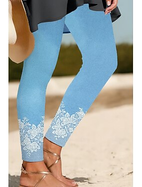 Femmes Leggings Vacances ancien Basique Capris Taille haute Fleuri Confort Doux Confortable Élastique Quotidien Extérieur Vacances Bleu Jaune Vert Été Printemps Automne Coupe Slim
