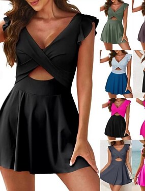 Femmes Maillots de Bain Vêtement couvrant Maillot de bain Ourlet à franges Découpé Vacances Tenues de plage A Ombre Col en V Manches courtes Maillots de bain