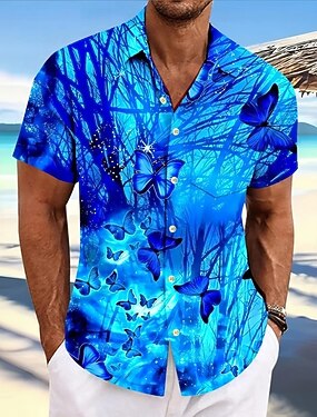 Homme Papillon Plantes Tropicales Lueur néon Chemise hawaïenne Chemise Boutonnée Chemise Aloha Manche Courte Hawaïen Occasionnel Vacances Été Printemps Col Rabattu Impression 3D chemises à col Une