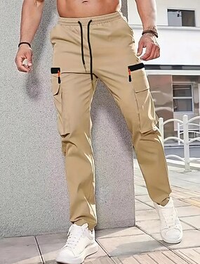 Homme Joggings Pantalons Cordon de serrage Avec Poches Taille Élastique Uni Confort Sport en Plein Air Quotidien Mode Occasionnel Noir bleu marine Micro-Élastique