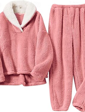 Femmes Pyjamas Loungewear 2 Pièces Flanelle Mode Occasionnel Sweat à capuche couverture portable Couleur Unie Taille Élastique Pull Pantalon Quotidien Maison Vacances manche longue Col de chemise