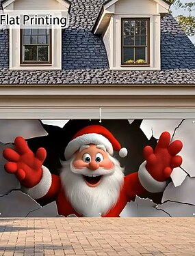 Couverture de porte de garage de Noël Père Noël perçant le mur grande toile de fond suspendue bannière murale de vacances extérieure cour maison festive décoration de fête 3D scène de Noël saisonnière