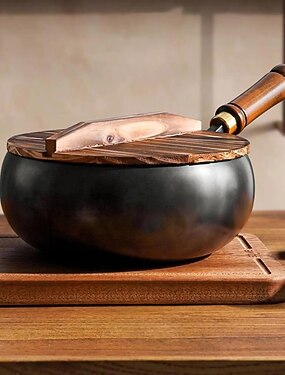 Grande marmite en fer forgé à la main, petite poêle à frire non revêtue, ustensiles de cuisine traditionnels pour une cuisson polyvalente et une bonne rétention de la chaleur