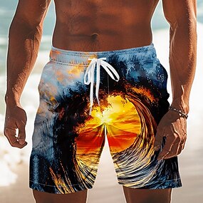 Homme Illusion d'optique Océan Coucher du soleil Maillots de bain Shorts de bain Shorts de Surf Taille Moyenne Streetwear Hawaïen Vacances Poches Latérales doublure en maille Taille élastique avec