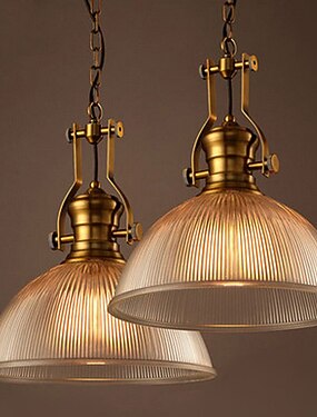 Lampe suspendue en forme de dôme vintage avec tête unique en verre nervuré, luminaire décoratif en laiton, 110-240v