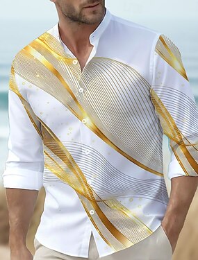 Homme Dégradé Formes Géométriques Vagues Chemise Chemise à col montant manche longue Mode Décontractée Tenue Quotidienne Fête Printemps Automne Col mandarin Band Collar Impression 3D Chemises