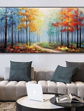grande peinture à l'huile de texture sur toile peinture de forêt colorée faite à la main pour le salon peinture d'art mural peint à la main peinture à empâtement à texture lourde décor boho