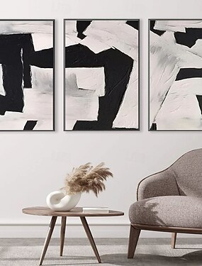 Peinture à l'huile peinte à la main, noire, grise et blanche, style abstrait moderne sur toile, texture minimaliste, art mural fait main, décoration murale pour salon ou maison