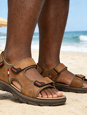 Sandales de sport marron pour homme, confortables et ajustables grâce à leur bout ouvert et leur fermeture à scratch. Idéales pour les vacances à la plage, les voyages, la randonnée, les loisirs en plein air, l'été au quotidien et les aventures décontract