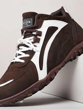 Chaussures de randonnée marron et blanches pour hommes - chaussures d'extérieur résistantes avec semelle confortable, idéales pour le trekking, la randonnée et l'aventure.