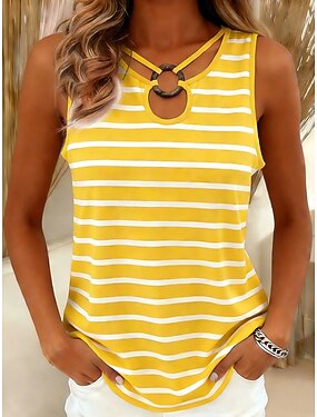 Tunique-débardeur à découpe en forme de goutte pour femme, ornée d'un motif géométrique à rayures, élégante et classique, sans manches, asymétrique, longue, jaune, été, printemps