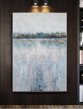 Peinture à l'huile faite à la main sur toile, décoration murale, paysage abstrait moderne, reflets de lac de montagne pour salon, décoration d'intérieur, cadre tendu, peinture suspendue/enroulée, sans