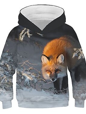 Garçon 3D Graphic Bande dessinée Renard Sweat à capuche manche longue 3D effet Eté Automne Actif Vêtement de rue Polyester Enfants 3-12 ans Casual du quotidien